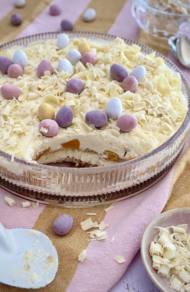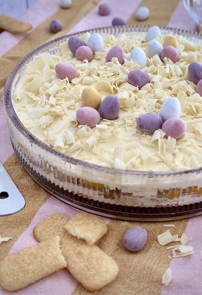 10. Tiramisu vor dem Servieren mit weißen Schokohobeln und den Schokoeiern verziehren <3