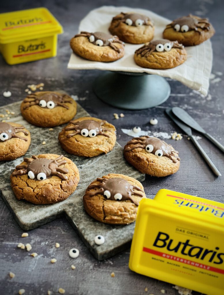 Da Halloween vor der Tür steht, habe ich mich heute für Spider Cookies entschieden. Die Basis ist ein Peanut Butter Cookie und die süßen Spinnen habe ich aus kleinen Peanut Butter Cups, Zuckeraugen und geschmolzener Schokolade gezaubert. Alternativ könnt ihr eine andere Schoko“kugel“ nach eurem Geschmack verwenden, da gibt es viele Möglichkeiten.